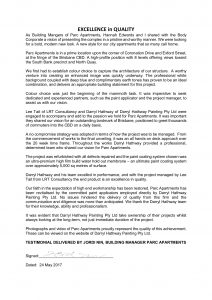 Our faith in the expectation of high end workmanship has been restored. Parc Apartments has been revitalised by the committed paint applicators employed directly by Darryl Hathway Painting Pty Ltd. No issues hindered the delivery of quality from this firm and the communication and diligence was more than anticipated. We thank the Darryl Hathway team for their knowledge, ability and professionalism.