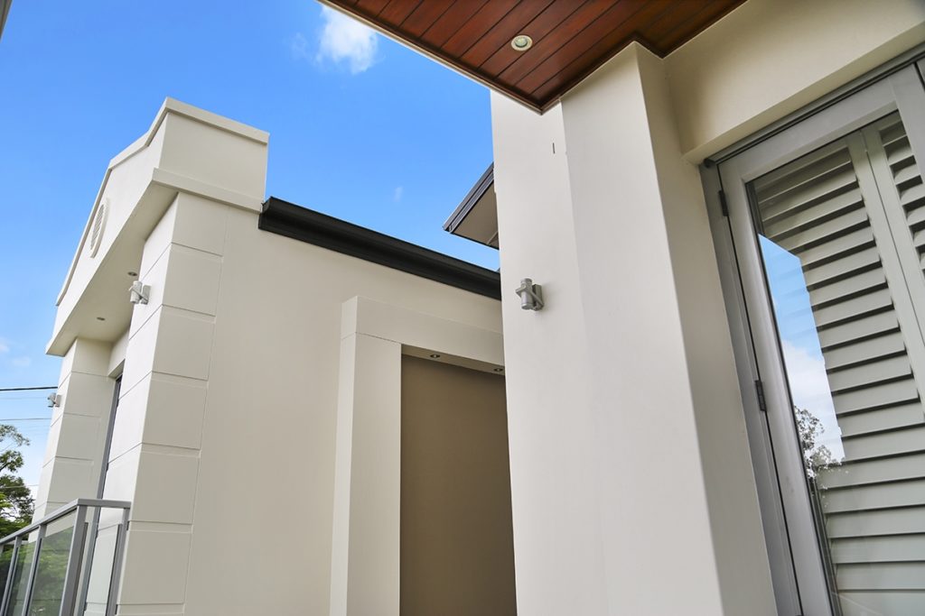 The property’s existing paintwork was suffering from oxidation and its exterior timbre work was showing signs of water staining. In order to address these issues and to gain access to the full height of the building, a standard scaffolding system was erected. The water staining on its timbre work was addressed with staining and clear coating, while its exterior rendering was coated with AcraTex AcraPrime and followed by two full coats of Dulux AcraTex Elastomeric 201.